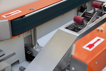 7、下部的膠帶作業(yè),在側(cè)面輸送帶驅(qū)動(dòng)下通過機(jī)器,有膠帶分割器迅速簡(jiǎn)便地貼上膠帶。